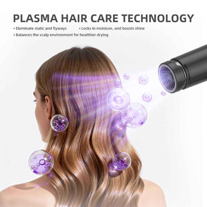 A: Ionic hair dryers primarily emit negative ions to reduce static. Our plasma hair dryer generates a higher concentration of both positive and negative ions. This provides a more comprehensive effect: superior static elimination, more effective cuticle sealing for enhanced shine and frizz control, and better moisture retention within the hair shaft.